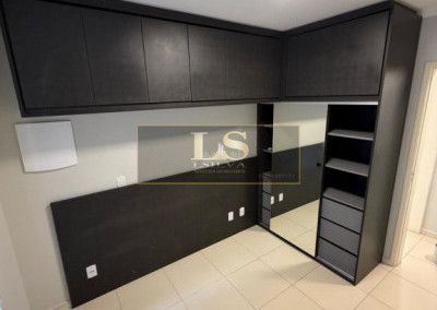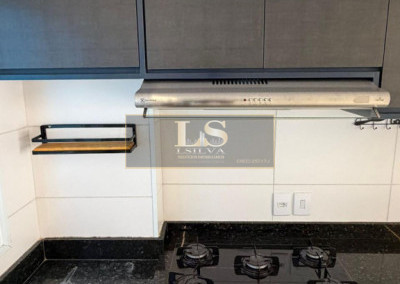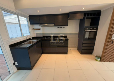 Cozinha, sala com móveis planejados forno, fogão e exaustor, lavabo, 2 dormitórios com varanda (sendo 1 dos quartos com ar condícionado) quintal com corredor, área de seriço coberta, 2 vagas de garagem.