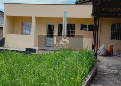 Casa térrea com 2 dormitórios, sala, cozinha, banheiro, lavanderia fechada, varanda, quintal grande, garagem p/ 2 ou mais carros.
